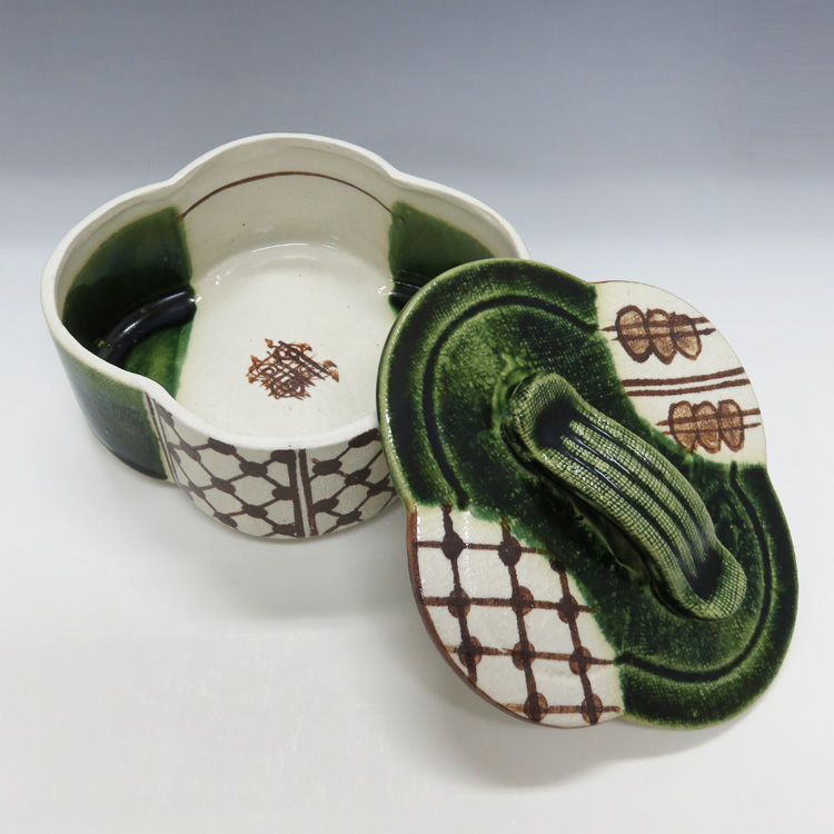 | 作家・作品名 | 加藤五陶・菓子器 食籠 (じきろう) 木瓜 織部 小 | | 詳細 | --- | | 箱 | 紙箱 | | 寸法 | 19×16.5×11cm | | 商品番号 | 103360[stc010-037-20-菓子鉢-12] | | 注意 | ●商品の質感・色は、お客様のご使用のモニターやブラウザなどの環境により、実物と異なる場合がございます。ご了承ください。