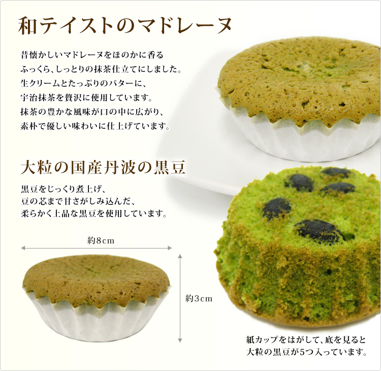 ●宇治抹茶まどれーぬ(マドレーヌ) 丹波黒豆入り 5個