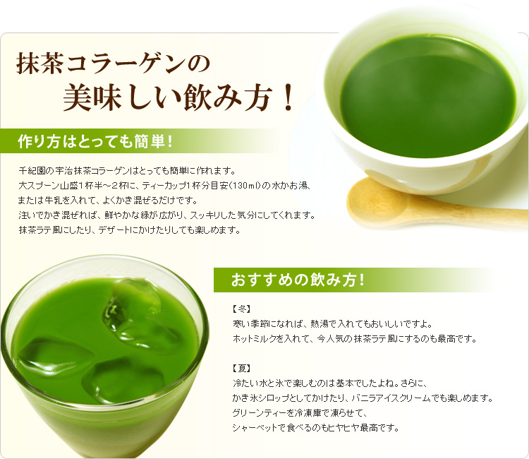 還元麦芽糖水飴末、宇治抹茶、コラーゲンペプチド(原料の一部にゼラチンを含む) |