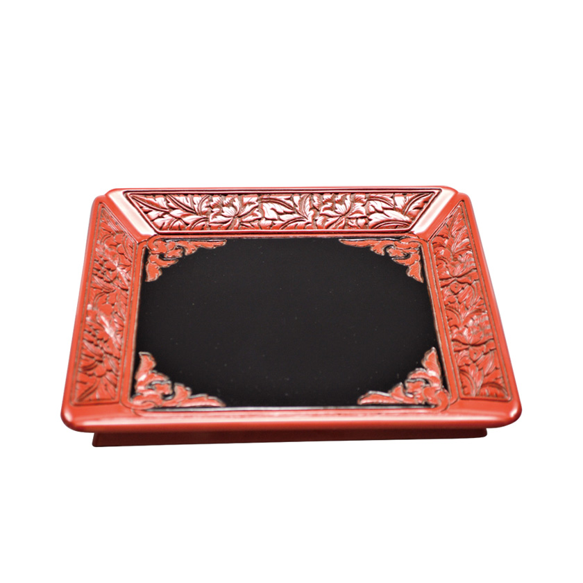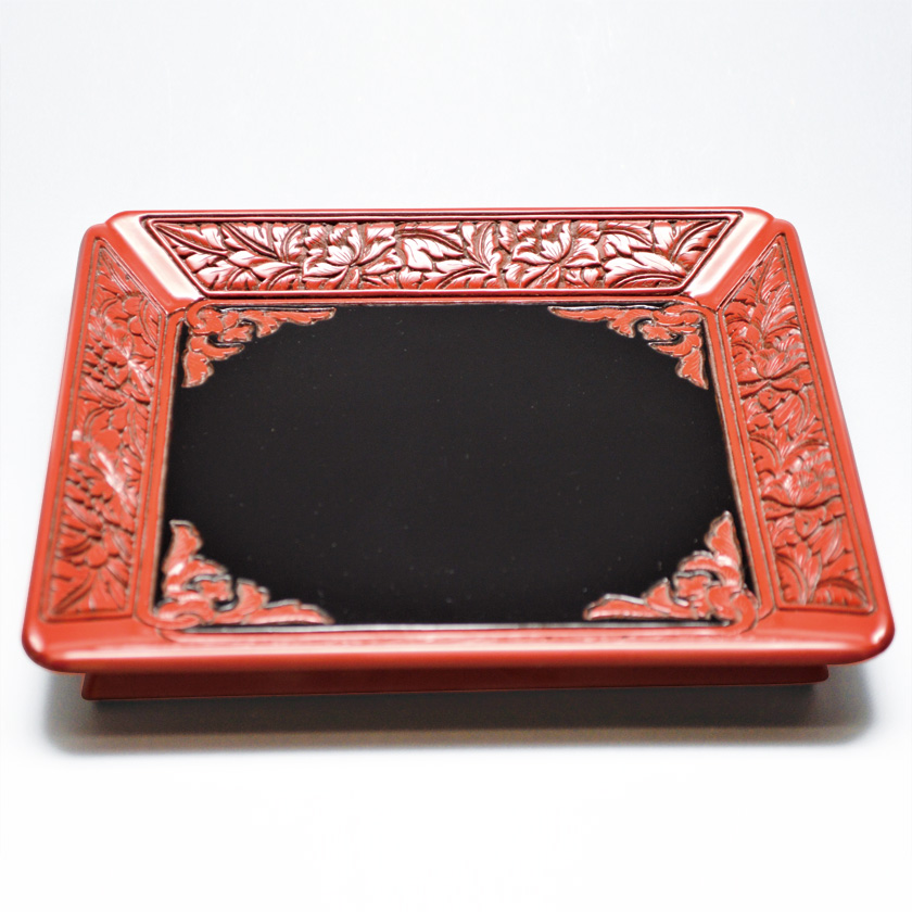 | 作家・作品名 | 尾崎吉蔵・茶入盆 堆朱塗盆 牡丹唐草 |