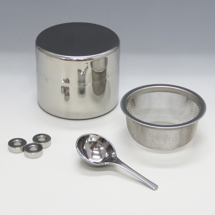 速い!簡単!汚さない!三拍子そろった全ステンレス製茶篩缶です。