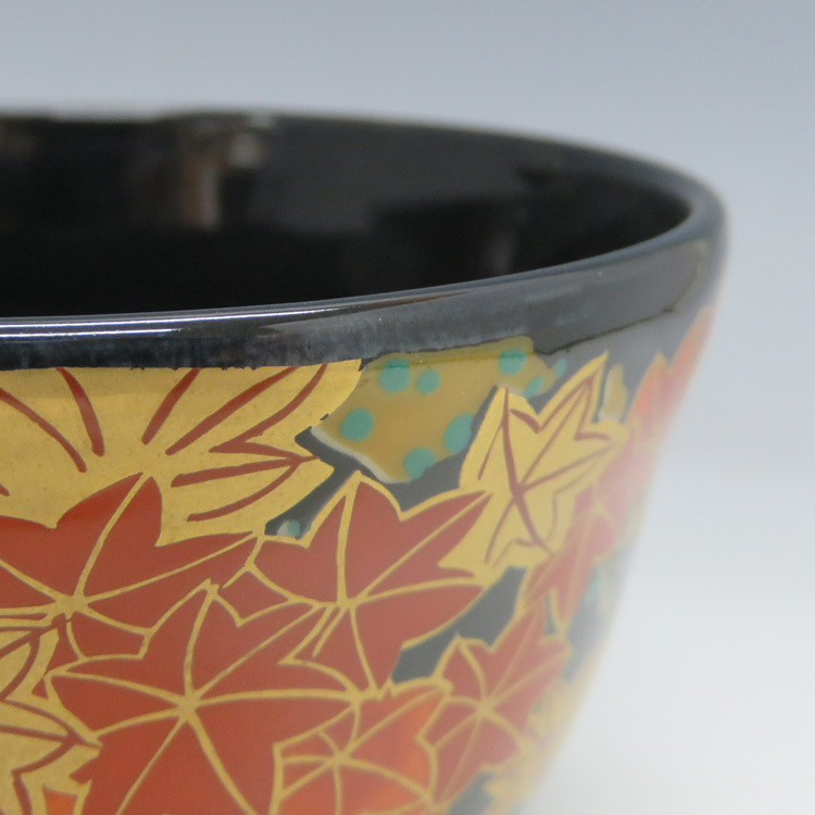 6. 茶道具 抹茶茶碗(まっちゃちゃわん) 茶碗 黒仁清 紅葉 宮地英香