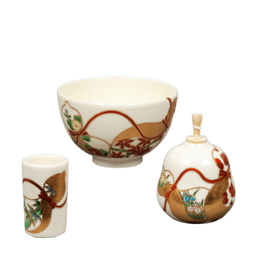 | 作家・作品名 | 善高・陶器三点セット(茶碗・振出・茶巾筒) 仁清 瓢箪 | | 詳細 | --- | | 箱 | 化粧箱(紙) | | 寸法 | --- | | 商品番号 | 103426[stc010-037-53-T三点-15] | | 注意 | ●商品の質感・色は、お客様のご使用のモニターやブラウザなどの環境により、実物と異なる場合がございます。ご了承ください。