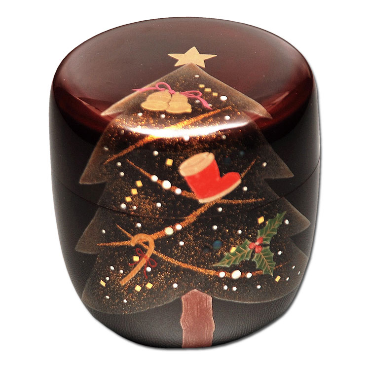 6. 茶道具 薄茶器(うすちゃき) 中棗 溜塗 クリスマスツリー 塚本規義作 クリスマス Xmas Christmas 聖誕節