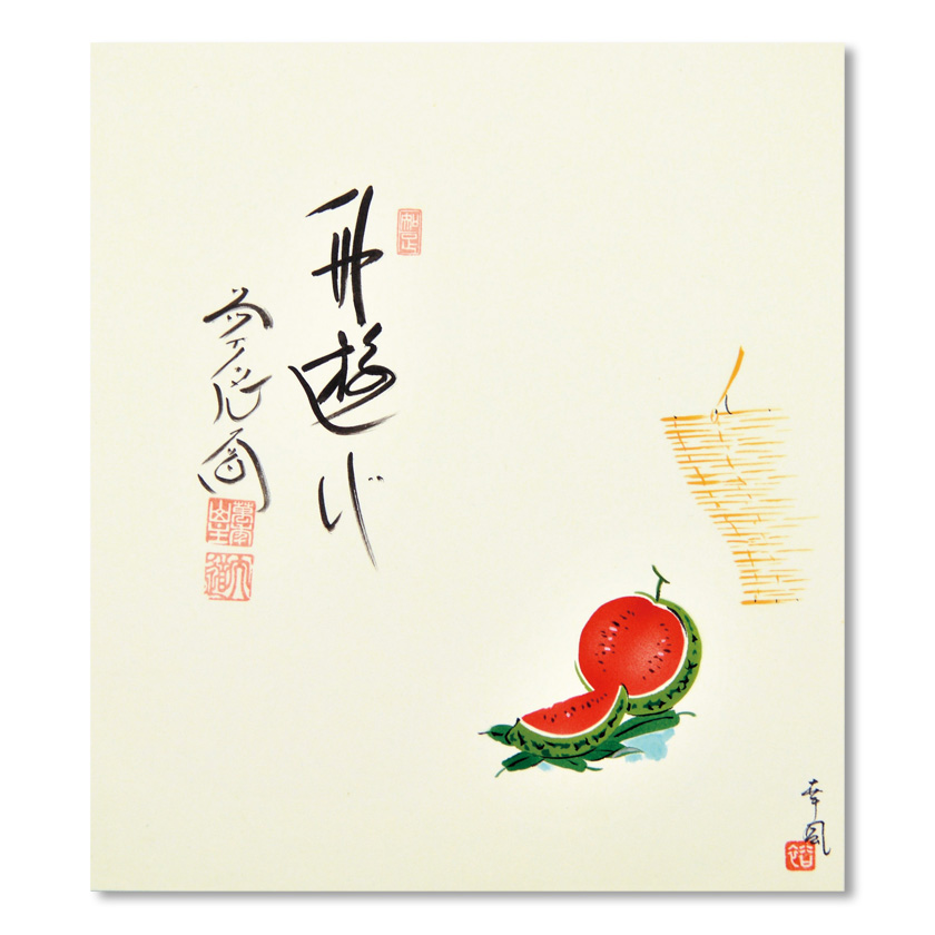 | 作家・作品名 | 西垣大道師・曽根幸風画・色紙 すいか画 「舟遊び」 | | 詳細 | --- | | 箱 | タトウ紙 | | 寸法 | --- | | 商品番号 | 106403[stc010-298-10-311] | | 注意 | ●商品の質感・色は、お客様のご使用のモニターやブラウザなどの環境により、実物と異なる場合がございます。ご了承ください。