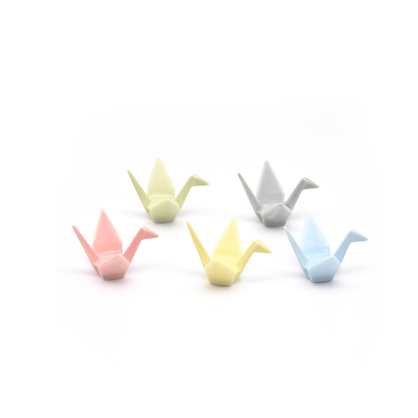 | 作家・作品名 | 箸置セット 5色折鶴(平和の祈り) | | 詳細 | --- | | 箱 | 化粧箱(紙) | | 寸法 | --- | | 商品番号 | 10694[stc010-305-06-17] | | 注意 | ●商品の質感・色は、お客様のご使用のモニターやブラウザなどの環境により、実物と異なる場合がございます。ご了承ください。