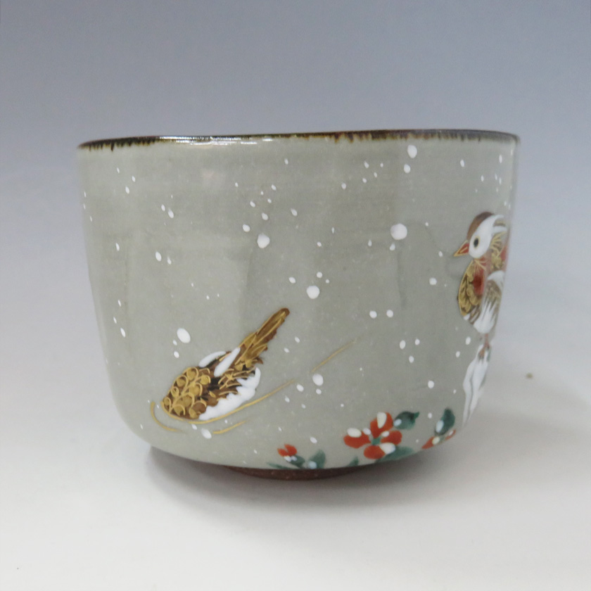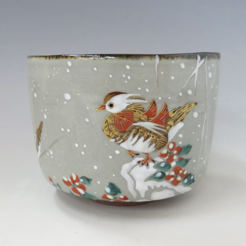 小野山佳水・半筒茶碗 若冲 「雪中鴛鴦図」写