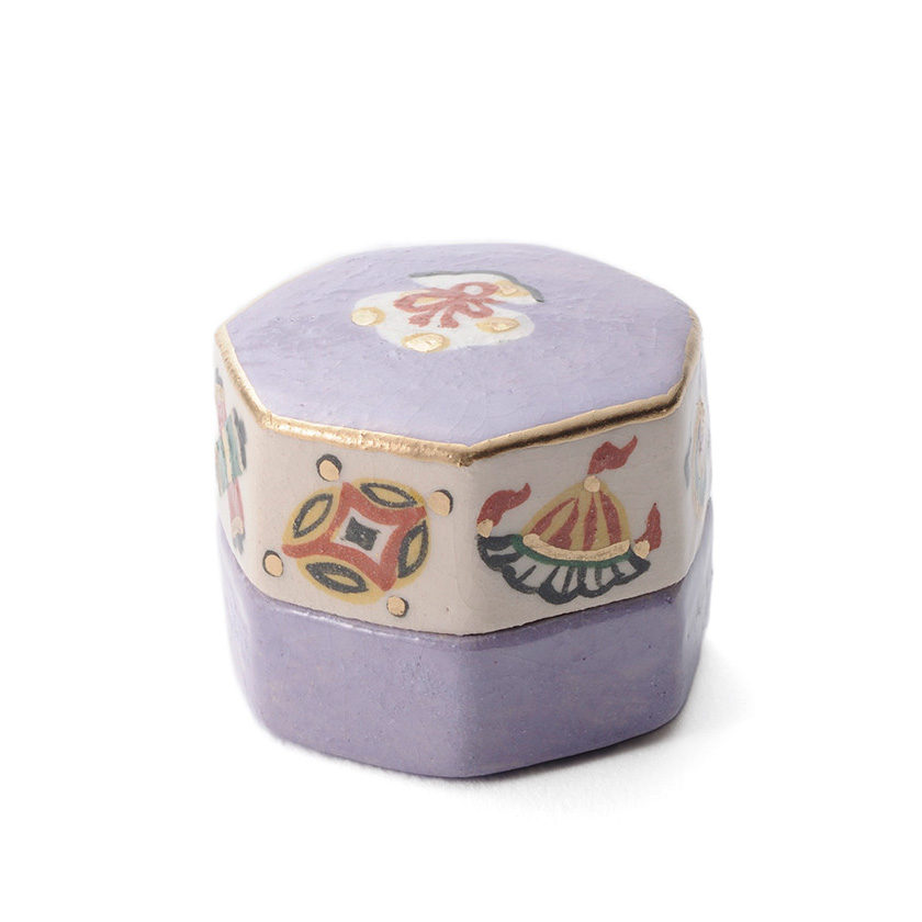 | 作家・作品名 | 吉村 楽入・季節香合 七角宝尽くし 紫楽 | | 詳細 | 好評の宝尽くし香合の新色です。 | | 箱 | 木箱 | | 寸法 | 幅4.7✕奥3.8✕高6cm | | 商品番号 | 202262[stc020-rakunyu006-B18] | | 注意 | ●商品の質感・色は、お客様のご使用のモニターやブラウザなどの環境により、実物と異なる場合がございます。ご了承ください。