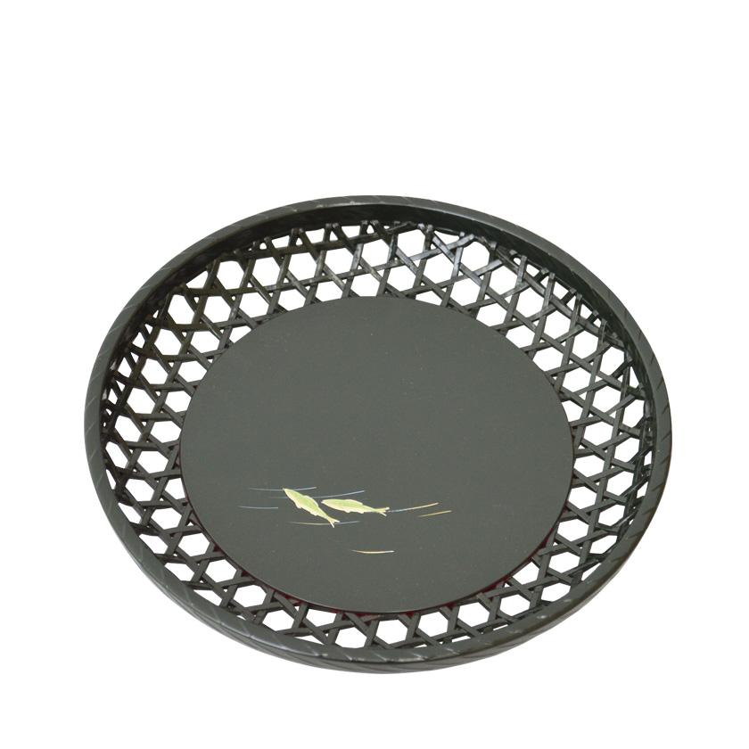 5. 茶道具 菓子器(かしき) 篭菓子器 清流に鮎蒔絵 樹脂製