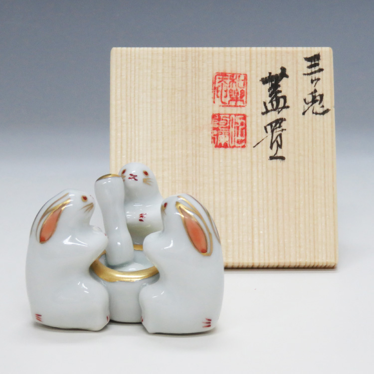 | 作家・作品名 | 高野昭阿弥・蓋置 三ッ兎 | | 詳細 | --- | | 箱 | 木箱 | | 寸法 | φ6×H4.5cm | | 商品番号 | 102090[stc010-038-QR-昭阿弥-21][stc010-299-03-06] | | 注意 | ●商品の質感・色は、お客様のご使用のモニターやブラウザなどの環境により、実物と異なる場合がございます。ご了承ください。