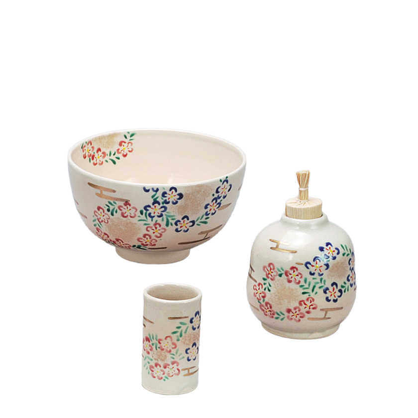 | 作家・作品名 | 香泉・三点セット(茶碗・振出・茶巾筒) 仁清 花輪 | | 詳細 | --- | | 箱 | 化粧箱(紙) | | 寸法 | --- | | 商品番号 | 101953[stc010-038-53-T三点-12] | | 注意 | ●商品の質感・色は、お客様のご使用のモニターやブラウザなどの環境により、実物と異なる場合がございます。ご了承ください。