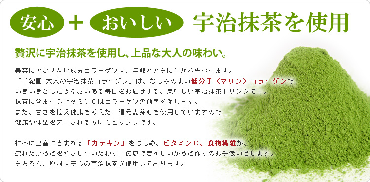 還元麦芽糖水飴末、宇治抹茶、コラーゲンペプチド(原料の一部にゼラチンを含む) |