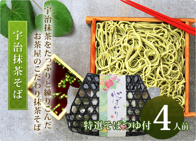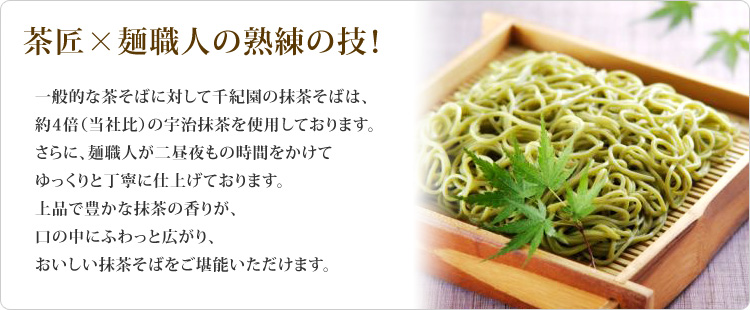 宇治抹茶をたっぷりとそばに練りこみ、二昼夜もの時間をかけてゆっくりと仕上げております。
