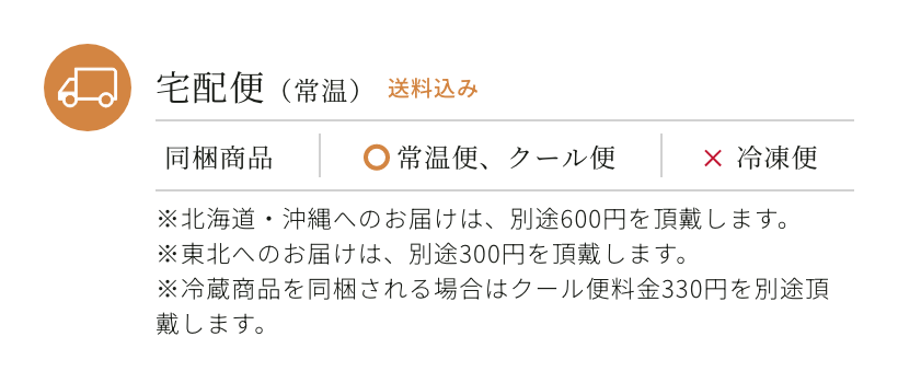 ●同梱商品が冷蔵品の場合、クール便+330円が必要です。